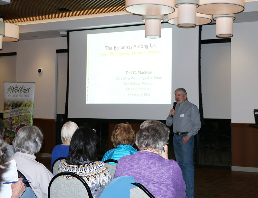 Ted’s presentation displayed his enthusiasm for insects and knowledge of their role and evolutionary development. Insects have been associated with plants since the origins of both groups, and in some species the association is not only exclusive but mutually obligate. Ted provided an overview of the many ways in which insects have evolved to rely on plants based on his years of field observations in Missouri and beyond.