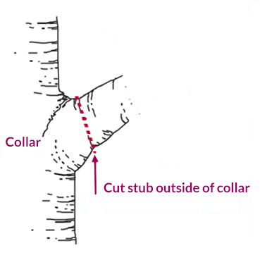 The branch collar is a thicker ring of bark that belongs to the trunk and encircles the base of the branch.