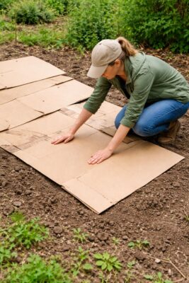 Garden waste can also be spread across the soil as a layer underneath the cardboard.