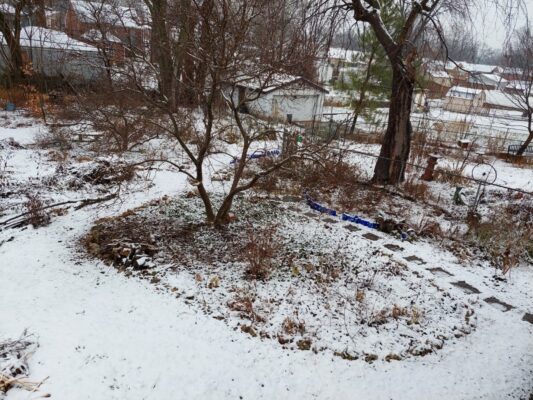 In the fall my sculptures and attractive rocks tend to get buried, so winter is a time to find them and give them a spot to be better seen.