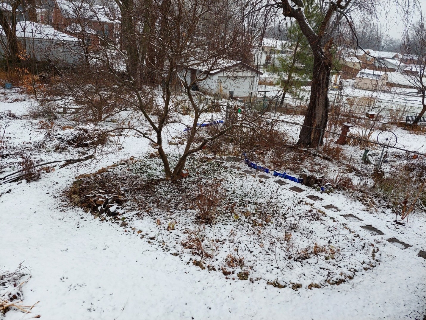 Winter is a good time to repair paths, add more wood chips to a mushy spot, dig trenches to divert water and make the stepping stones level.