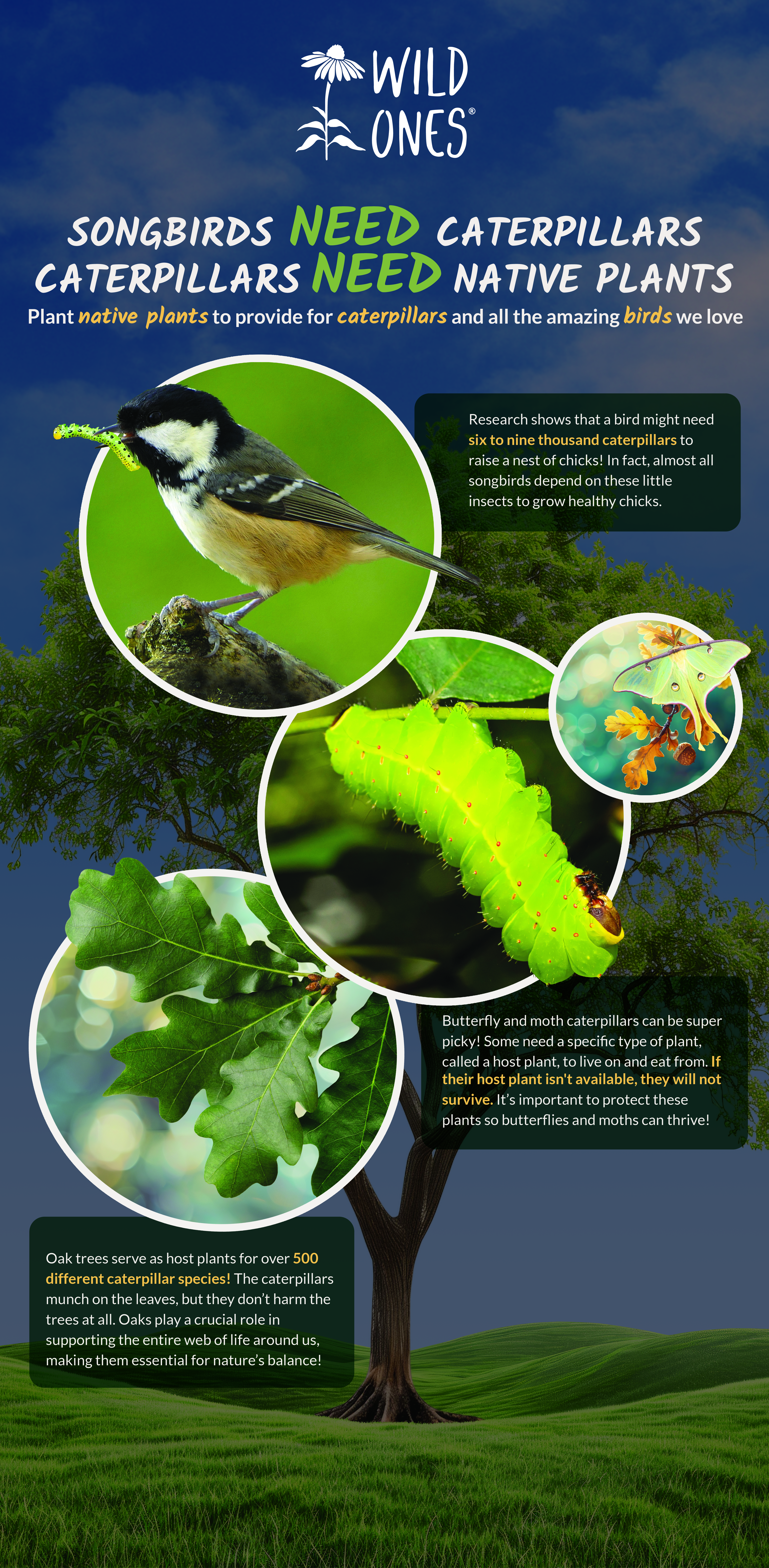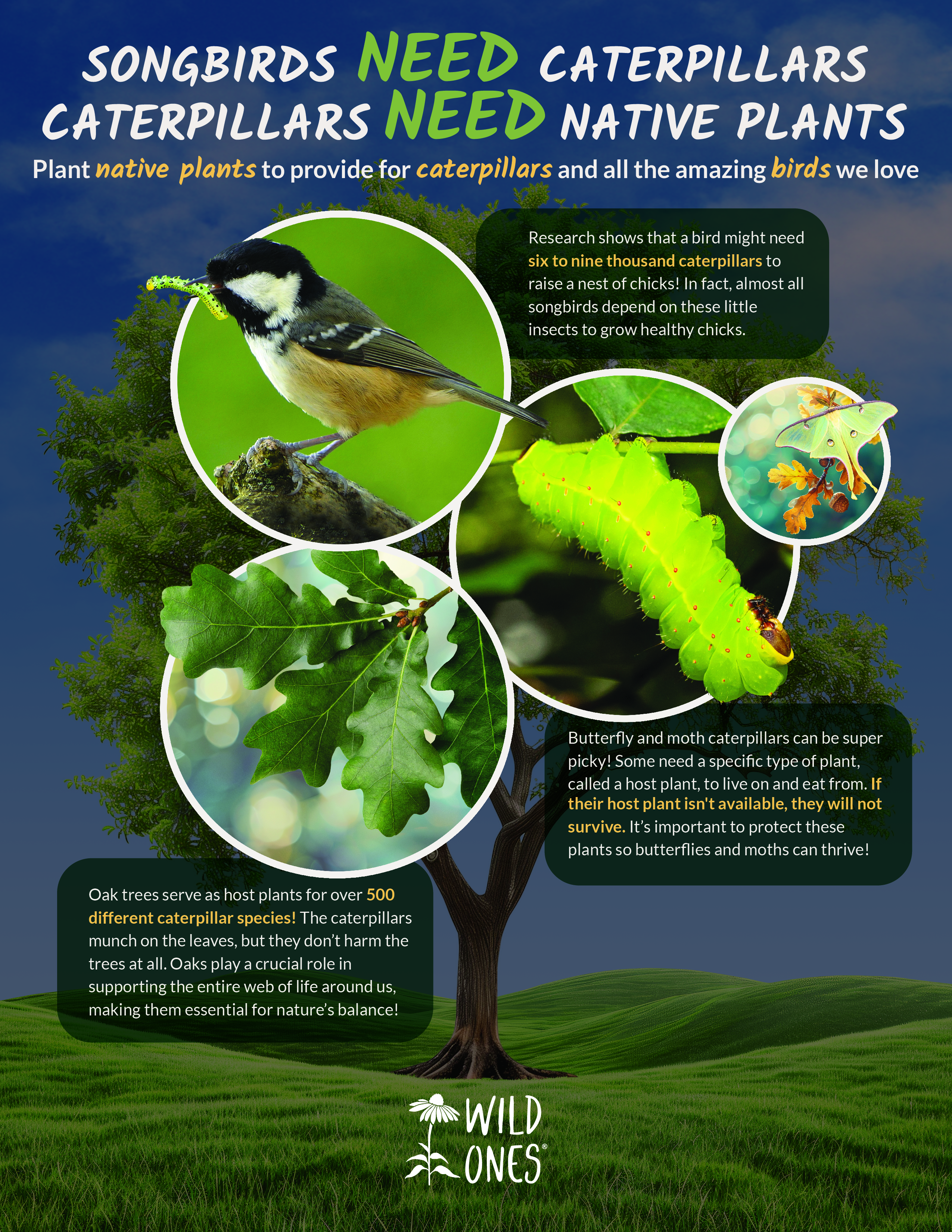 During our 2024 Spring wildflower market, members were talking to shoppers and were surprised how many were unaware of native plants as host plants. It seemed they were unfamiliar with the term “host plant.” We verbally tried to explain the life cycle of plant, butterfly/moth, and caterpillar and the critical role caterpillars play in the life cycle of songbirds. As you might imagine, that is a lot to take in while you are having a fairly quick conversation at a plant sale.